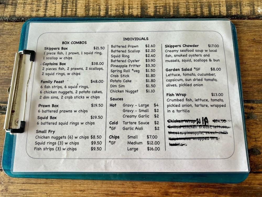 Situated at 5 Marina Parade, St Helens, TAS 7216, Skippers Fish Shop offers a refreshing dining experience on the water. The floating structure provides a sense of connection to the marine environment, making it an ideal stop for locals and tourists alike. The shop is accessible with both wheelchair-compatible features and free parking, making it convenient for all visitors. Known for its vibrant lunch and dinner offerings, visitors can enjoy a wide range of seafood options amid the community-centric vibe of St Helens, which celebrates its rich fishing heritage. This location thrives as a gathering spot, attracting groups, families, and solo diners looking to indulge in top-tier seafood dishes. The bustling atmosphere, particularly during peak hours, showcases the popularity and quality of the food provided. With a dedication to freshness, the shop sources its seafood locally and ensures a quick service experience that does not compromise on flavor. Enjoy the sound of waves and the sight of boats as you savor your meal, immersing yourself in the laid-back maritime culture of this charming town.